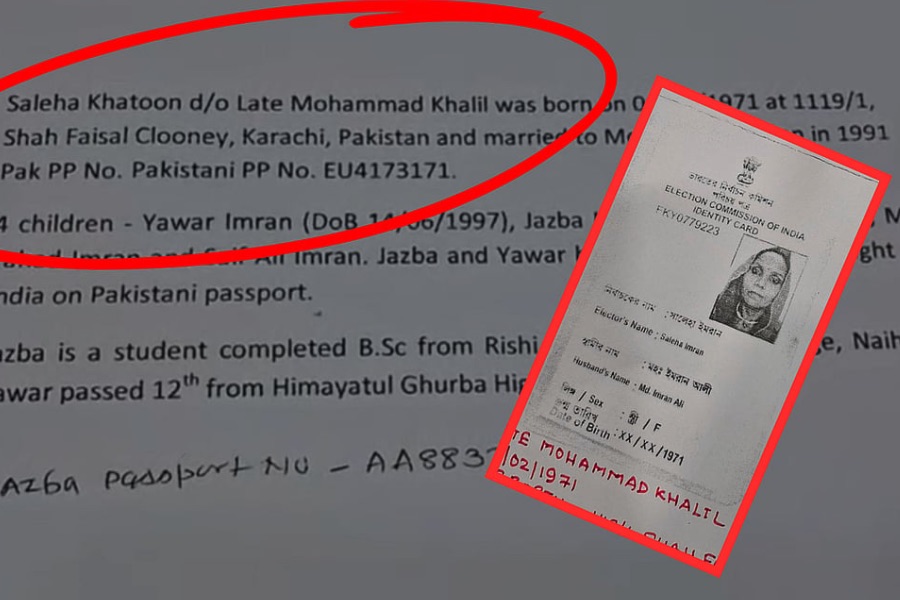 নৈহাটি বিধানসভার অন্তর্গত ৮ নম্বর ওয়ার্ডের গৌরীপুর এটি ঘোষ লেনের বাসিন্দা মহম্মদ ইমরান। তাঁর স্ত্রীর নাম সালেহা খাতুন। অর্জুন সিংহের অভিযোগ, সালেহা পাকিস্তানের করাচির বাসিন্দা। পাকিস্তানের পাসপোর্ট নিয়ে ভারতে এসেছিল। তার পরে এখানকার ভোটার কার্ড তৈরি করে নিয়েছেন। বৃহস্পতিবার অর্জুন বলেন, “এসআইআর নিয়ে চমকানি-ধমকানি চলছে। এ দিকেও এমন হচ্ছে। ও পাকিস্তানের পাসপোর্ট নিয়ে এসেছিল। এখানে এসে ভারতীয় হয়ে গিয়েছে।”