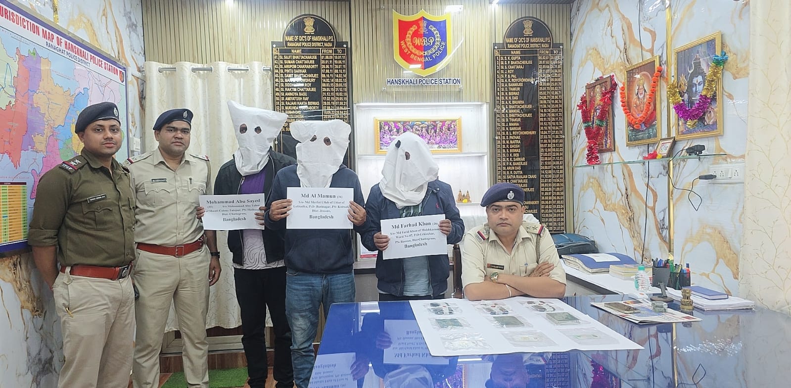 রবিবার গভীর রাতে গোপন সূত্রের খবর পেয়ে হাঁসখালি থানার পুলিশ উমরপুর গ্রামের মোজেহার দফাদারের পুত্র কাদের দফাদারের বাড়িতে অভিযান চালায়। সেখান থেকেই পুলিশ তিনজন বাংলাদেশি নাগরিককে গ্রেফতার করে।