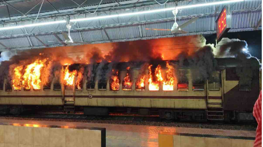 ট্রেনের মধ্যে দাউ দাউ করে জ্বলছে আগুন।